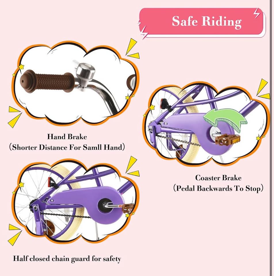 RULLY Donna Kids Bike for Girls Ages 2-7 Years, 12 14 16 Inch Princess Girls Bicycle with Doll Bike Seat, Training Wheels, Basket and Streamers, Kids Cycle Bikes, purple Color Delivery available within London