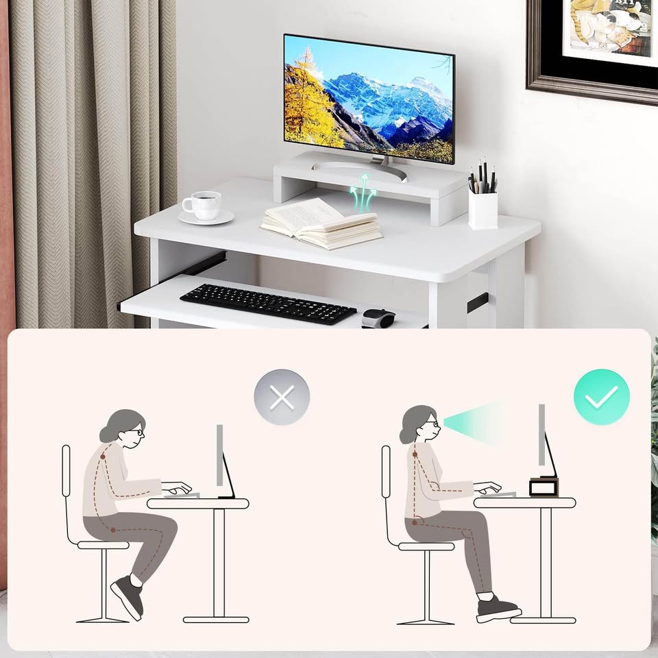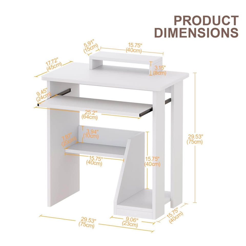 Brand new in box Home Office Computer Desk with Monitor Stand Keyboard Tray, 29.5 Inch Study Writing Desk Small PC Laptop Table with Storage Shelves, Modern Workstation for Small Spaces Save Space Delivery available within London Measurements in photos